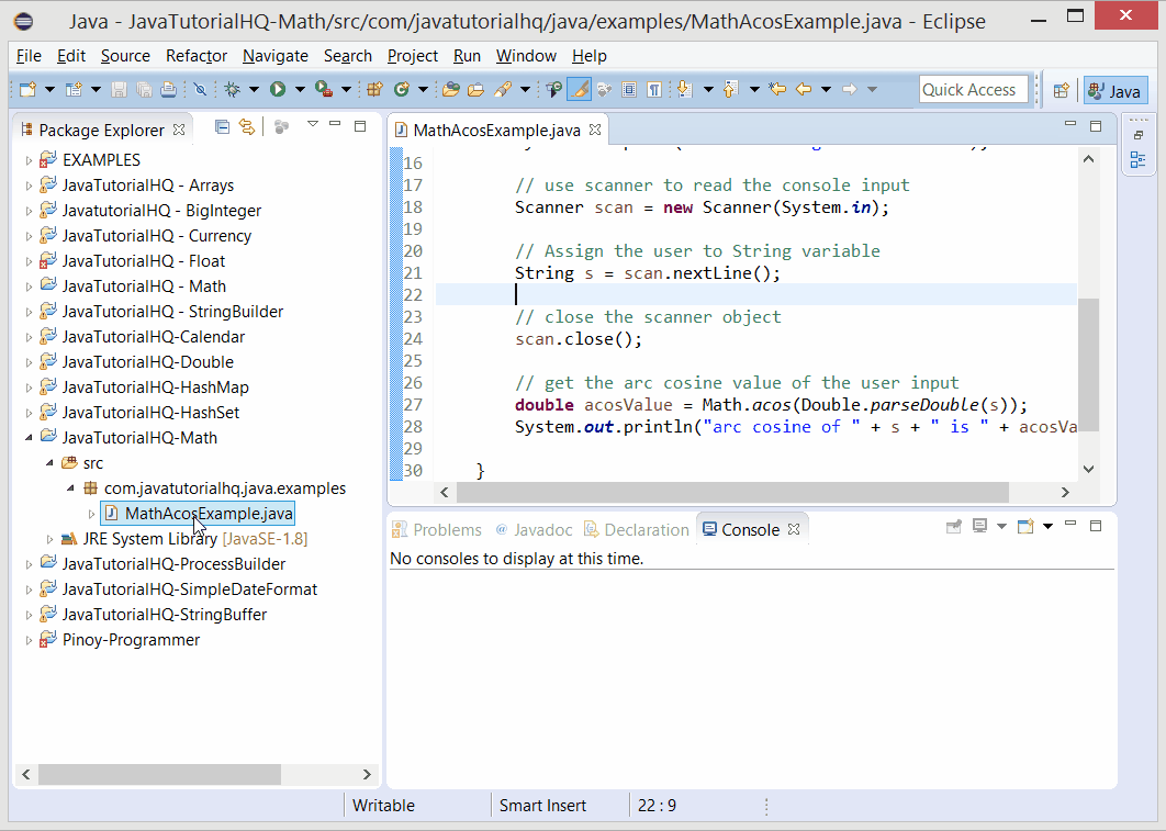 This method will always cache values in the range 128 to 127 inclusive and may cache other values outside of this range. Special cases if the argument is nan or an infinity then the result is nan. Sin cos acos asin atan atan2. The java math class has many methods that allows you to perform mathematical tasks on numbers.